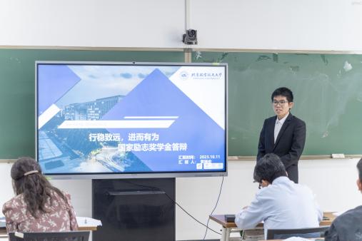 17位国家奖学金申请人、14位国家励志奖学金申请人依次进行自我陈述汇报,他们从成绩奖项、科研经历、学生工作、社会实践等方面介绍了自己的综合情况。各位评委从不同角度对候选人提问,从而对候选人进行更加深入考察。