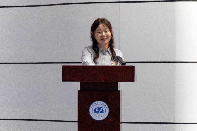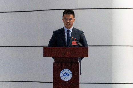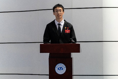 陆麒羽在学代会上发言。陆麒羽肯定了过去一年数学科学学院学生会的一系列改革建设和思想引领工作,并对数学科学学院学生会的未来的工作提出了期望与祝福,希望数学科学学院学生会作好示范表率,引导同学们努力成长为有理想、敢担当、能吃苦、肯奋斗的新时代好青年。